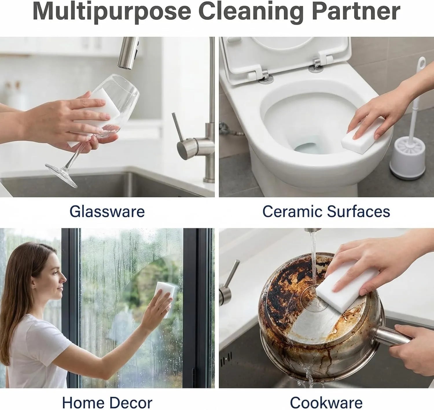 From kitchen counters and sinks to bathroom areas, walls, baseboards, and more, this sponge is designed for versatile household cleaning. Its multi-purpose use makes it a practical option for tackling different types of dirt and buildup throughout the home.